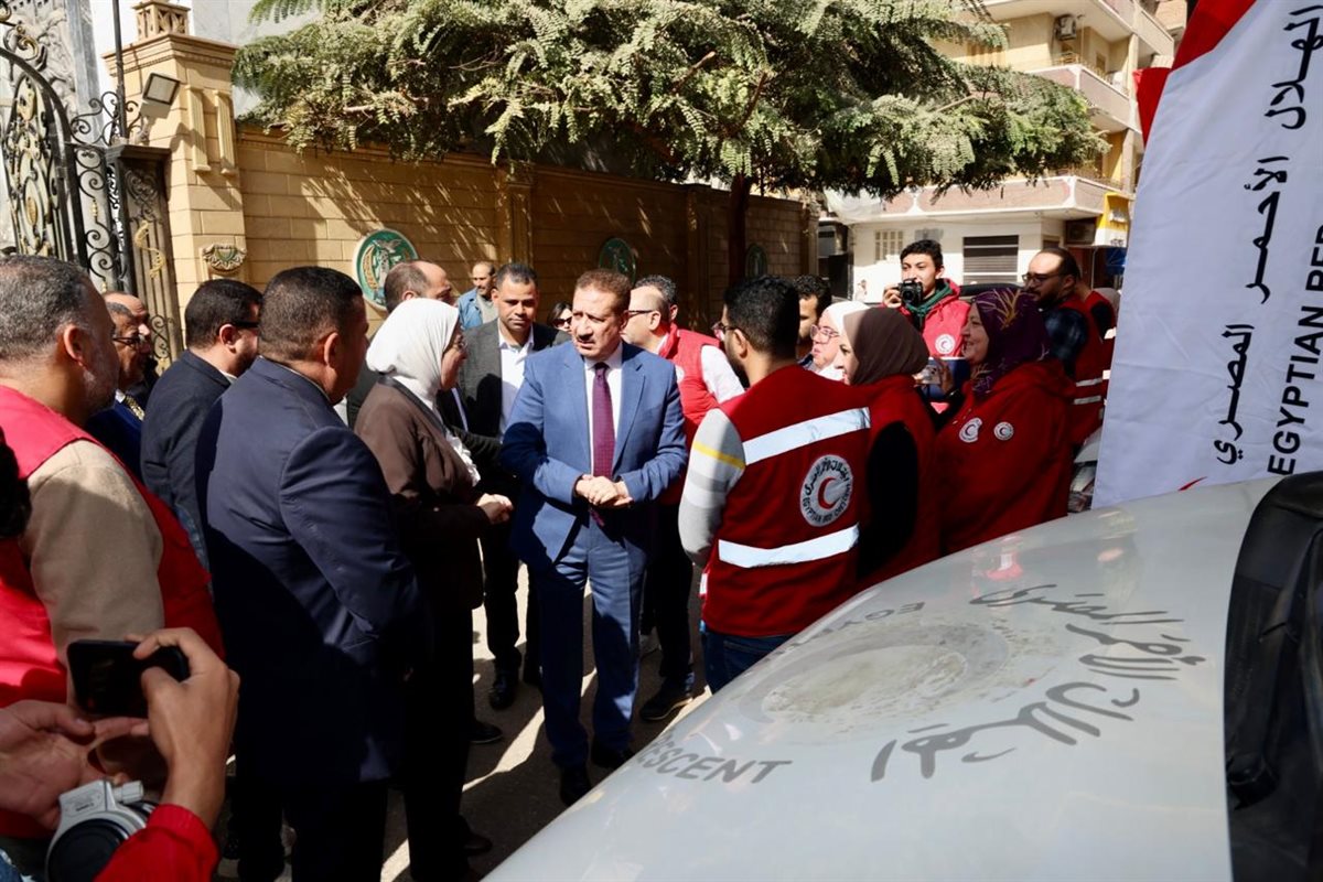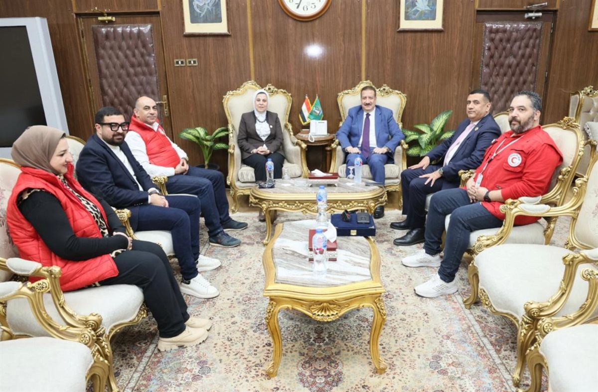 محافظ المنوفية يستقبل الهلال الأحمر لدعم الأسر المتضررة من فيضانات النيل