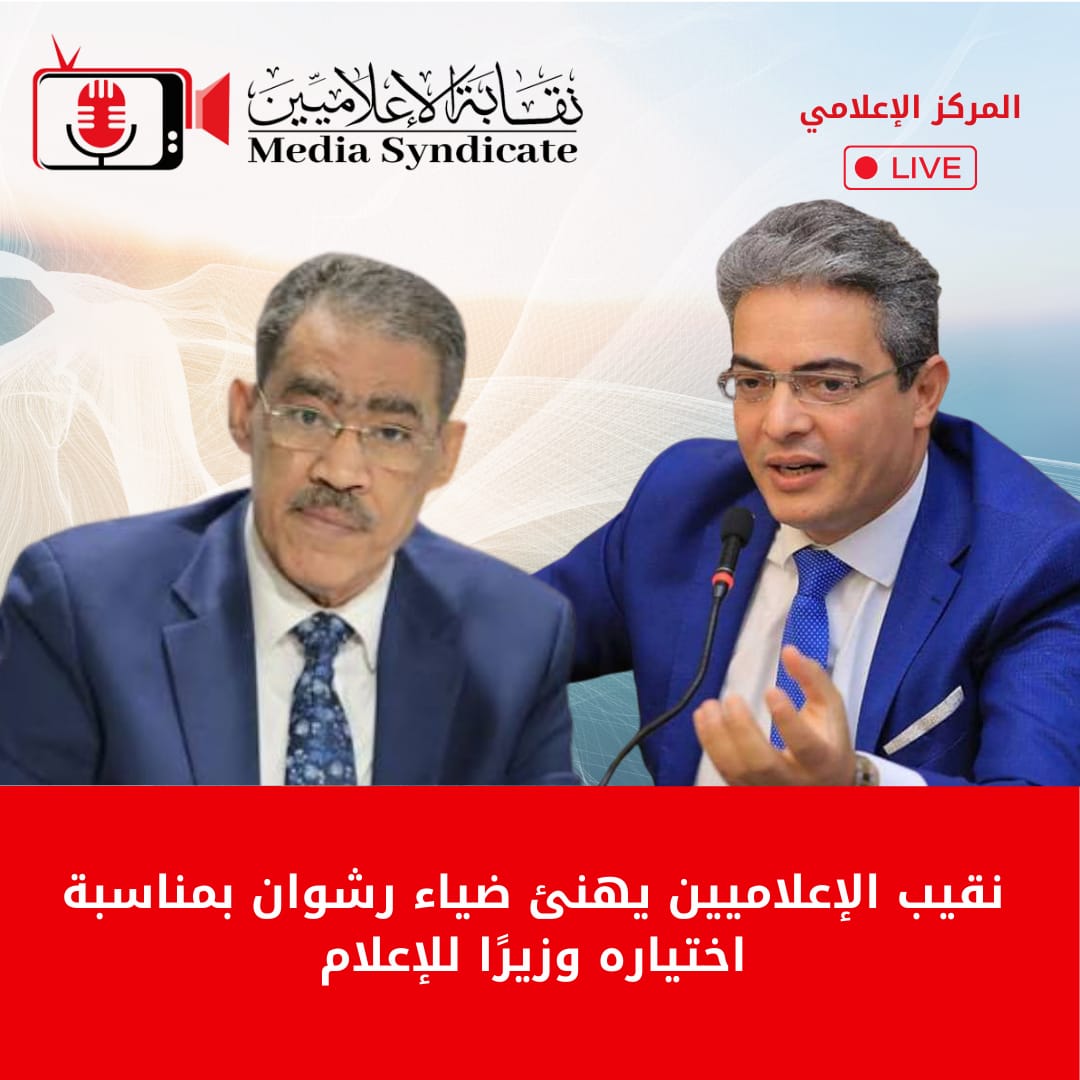 تقدّم النائب الدكتور طارق سعده، نقيب الإعلاميين، بخالص التهنئة إلى الكاتب الصحفي الأستاذ ضياء رشوان، بمناسبة اختياره وزيرًا للإعلام، متمنيًا له دوام التوفيق والسداد في أداء مهامه الوطنية خلال المرحلة المقبلة.