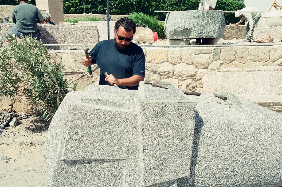 وأشار إلى أن هذا التطوير جاء استجابة لتراكم سنوات من العمل داخل الموقع دون تنسيق تخطيطي واضح، ما استدعى إعادة تنظيمه وفق رؤية وظيفية أكثر كفاءة تراعي طبيعة النحت على الجرانيت ومتطلبات العمل الميداني. وشملت أعمال التطوير إعادة تقسيم الموقع إلى ممرات متسعة تسمح بحركة الأوناش وسيارات النقل، وعلى جانبيها مساحات عمل مخصصة لكل فنان، جرى تجهيزها بمخارج الكهرباء والمياه والهواء المضغوط اللازمة.