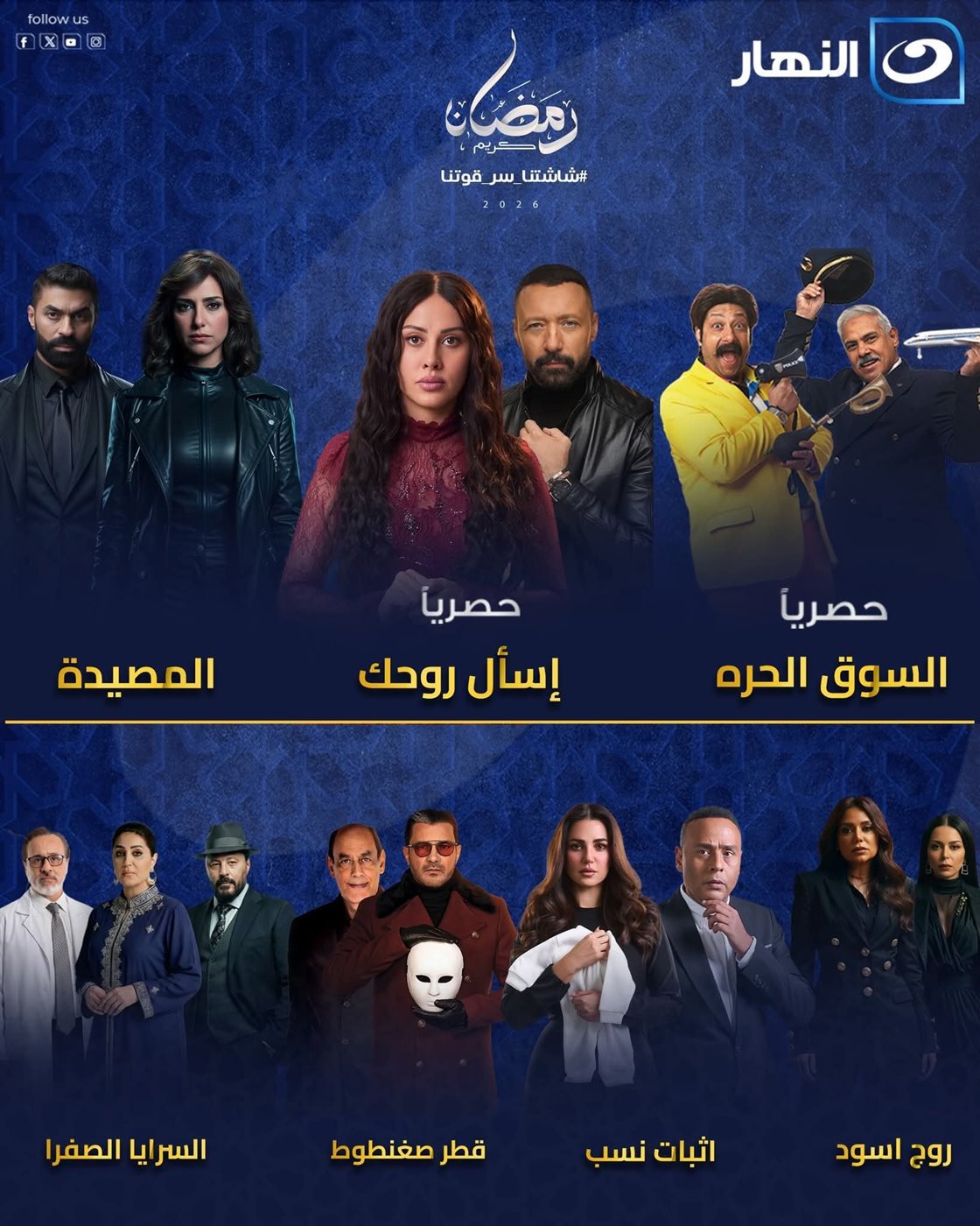 وتؤكد قنوات النهار أن هذه الخريطة الدرامية تأتي تحت شعار التنوع، من خلال باقة أعمال تضم نخبة من نجوم الفن، بما يضمن تقديم محتوى درامي متكامل يناسب طبيعة الأسرة المصرية والعربية خلال شهر رمضان المبارك.