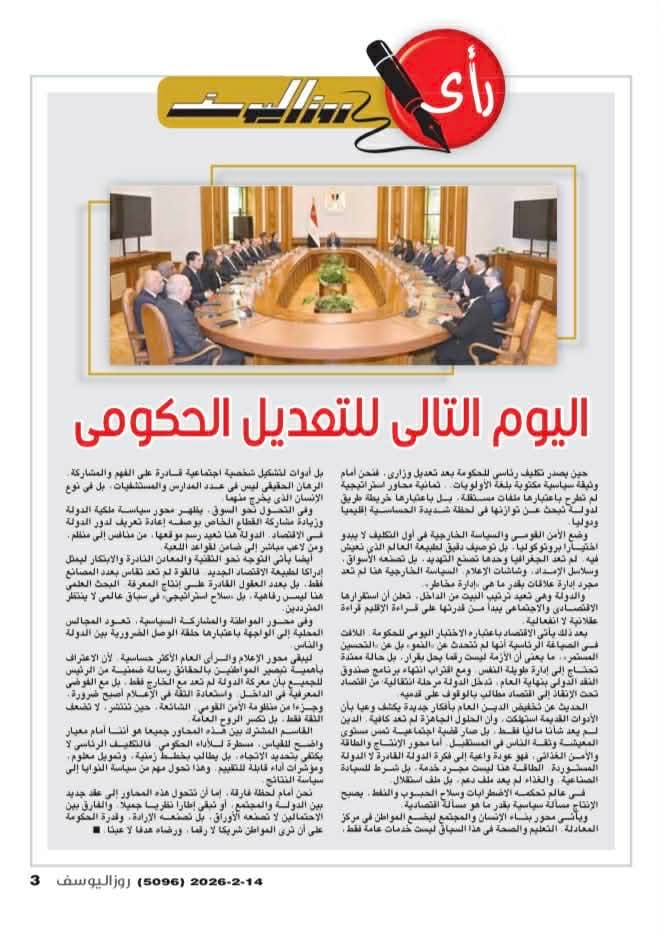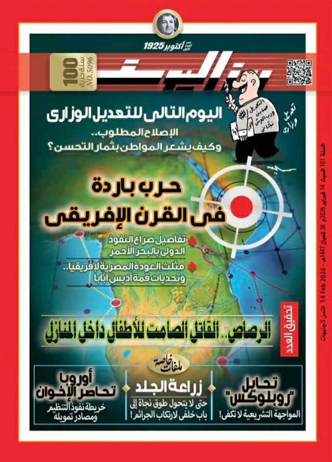 وفي العدد تتحدث "روزاليوسف" عن الإصلاح المطلوب بعد التعديل الوزاري مع موضوع خاص عن "الرصاص.. القاتل الصامت للأطفال داخل المنازل".