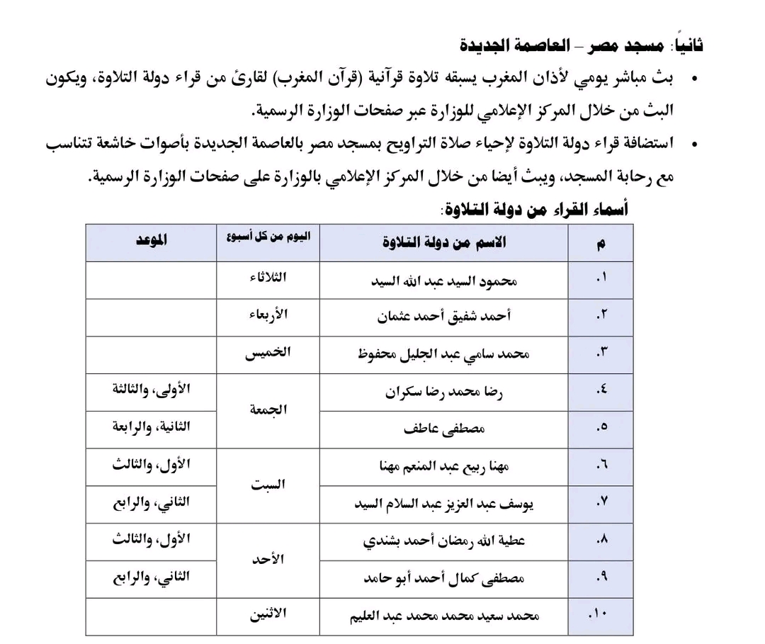 وتأتي هذه الفعاليات ضمن خطة دعوية مكثفة لإحياء الشهر الفضيل في عدد من المساجد الكبرى، تأكيدًا على مكانة مصر وريادتها في خدمة القرآن الكريم وأهله.
