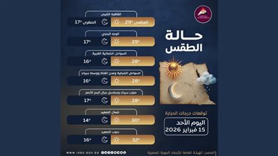 وفيما يلي بيان بدرجات الحرارة اليوم على محافظات ومدن مصر:
