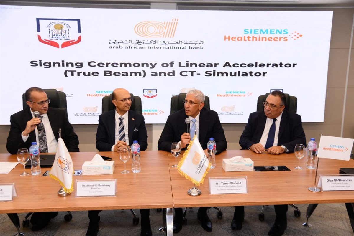 وأشار الأستاذ الدكتور أحمد المنشاوي، رئيس جامعة أسيوط إلى أن اليوم يمثل خطوة هامة في مسيرة تطوير المنظومة الطبية بجامعة أسيوط، بالحصول على جهاز المعجل الخطي، والذي يعد طفرة تقنية في علاج الأورام، فهو أحدث جهاز علاج إشعاعي والأول من نوعه على مستوى المستشفيات الجامعية، مؤكدا على إن التعاون مع البنك العربي الأفريقي الدولي ليس مجرد اتفاقية ثنائية، بل هو شراكة استراتيجية تهدف في مقامها الأول إلى رفع المعاناة عن مرضى صعيد مصر، ليجسد هذا التعاون المعنى الحقيقي للمسئولية المجتمعية؛ حيث تلتقي الخبرة الطبية مع الدعم المؤسسي.