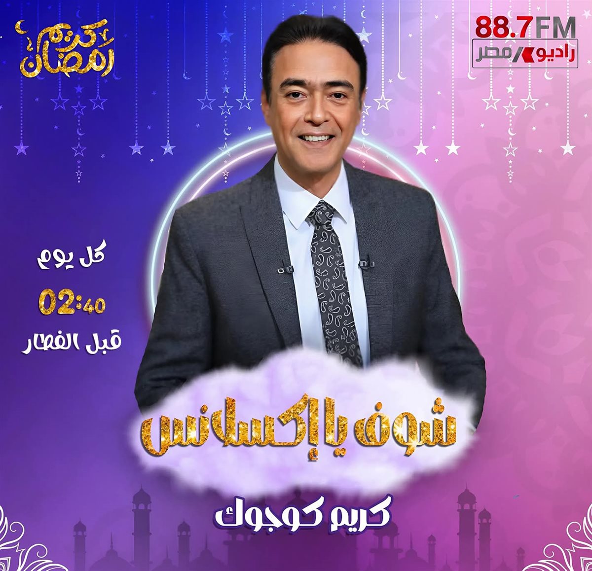 يقدم الإعلامي الكبير كريم كوجوك برنامج جديد يحمل اسم "شوف يا إكس لانس" عبر محطة راديو مصر في رمضان لعام 2026