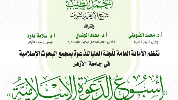 ينظِّم مجمع البحوث الإسلامية، الأحد المقبل، فعاليَّات الأسبوع الثامن عشر للدَّعوة الإسلاميَّة، الذي تعقده اللجنة العُليا لشئون الدَّعوة في جامعة الأزهر تحت عنوان: (القراءات الحداثيَّة وخطرها على الأمن المجتمعي)، برعاية فضيلة الإمام الأكبر دكتور أحمد الطيِّب، شيخ الأزهر الشريف، وإشراف فضيلة دكتور محمد الضويني، وكيل الأزهر، وفضيلة دكتور محمد الجندي، الأمين العام لمجمع البحوث الإسلاميَّة.