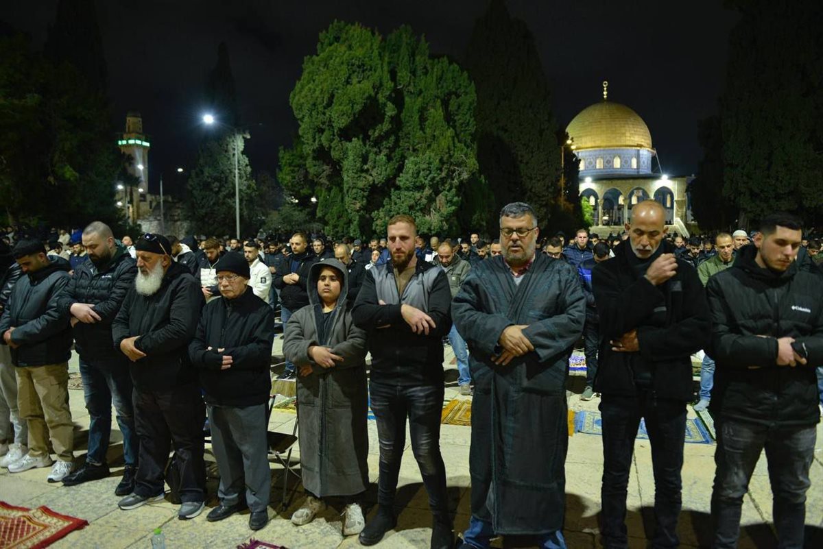 بالصور.. 60 ألف مرابط يؤدون العشاء والتراويح في "الأقصى"