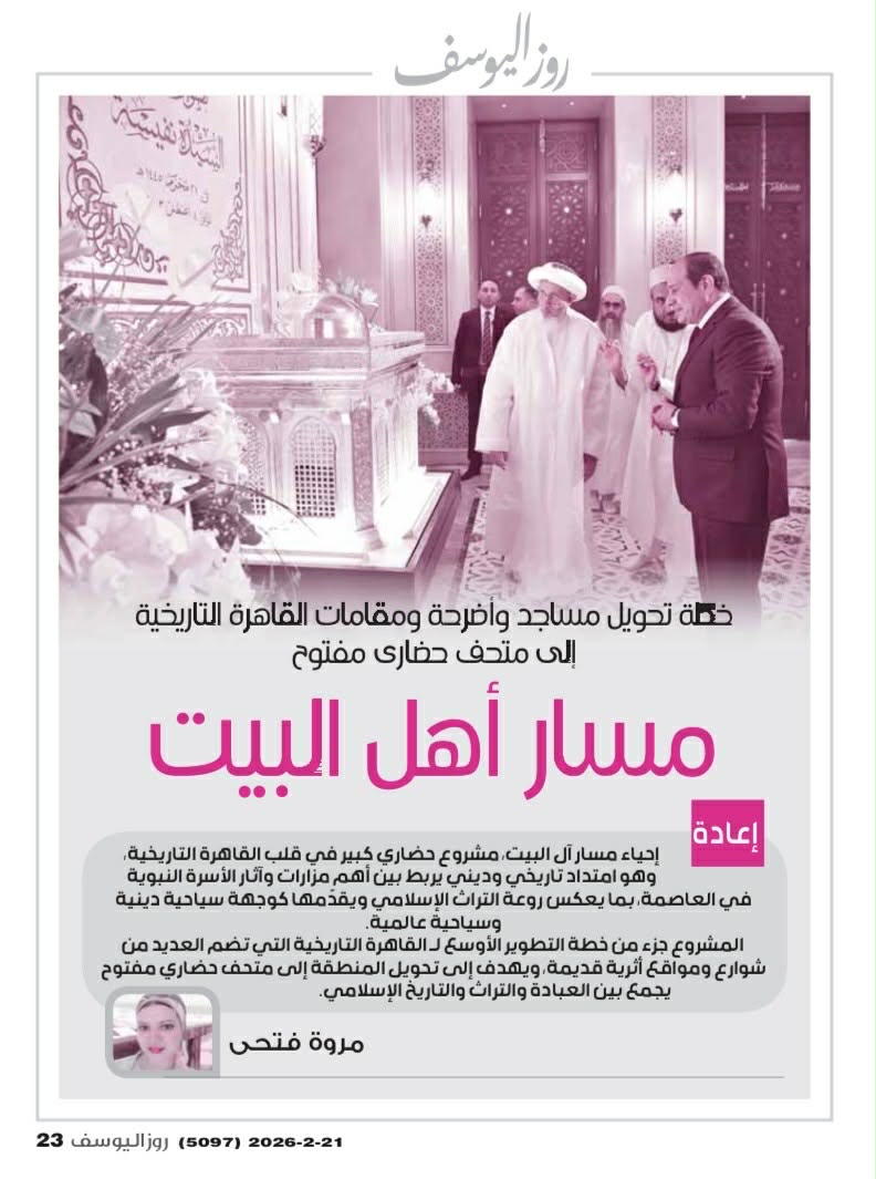 كما ترصد "روزاليوسف" التفاصيل الكاملة لمخطط تطوير مساجد وأضرحة القاهرة التاريخية تحت عنوان "مسار أهل البيت".