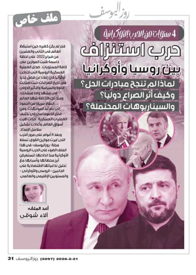 وفي العدد الجديد ملف خاص بمناسبة مرور 4 سنوات على الصراع الروسي الأوكراني.. فكيف تغير العالم؟