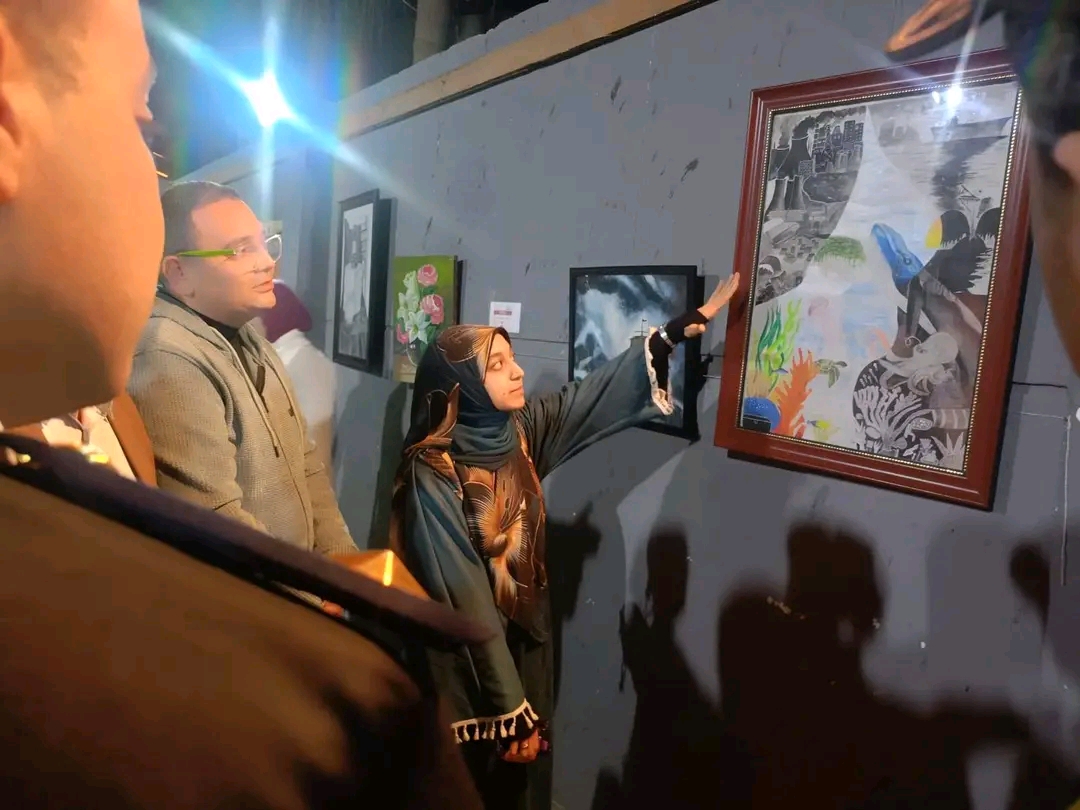 وعبر الفنانون عن سعادتهم بالمشاركة، وأوضحت الفنانة أمل عصام الشاذلي أنها شاركت بلوحتين؛ الأولى بمقاس 80×100 سم، منفذة على خامة كانسون أسود بالفحم الأبيض، تناولت فكرة أن الألم الداخلي هو السجن الحقيقي للإنسان، مجسدة رجلا يصرخ في دلالة على القوة والمقاومة، مع توظيف رموز السلاسل والمرآة المتكسرة والخط العربي للتعبير عن القيود والصراع الداخلي.