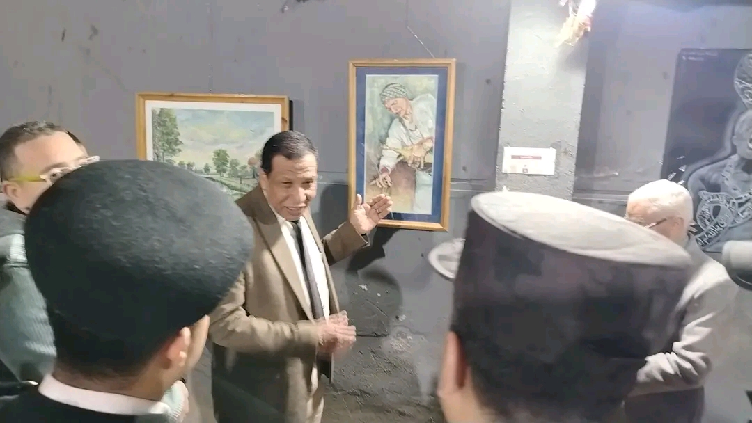 وأوضح الفنان إبراهيم أبو السعود مشاركته بعملين؛ الأول بعنوان "الأب الحامي"، منفذ بالألوان الزيتية على الكانفس، يجسد صورة الرئيس وهو يحتضن ابنة أحد الشهداء في مناسبة عيد الشرطة ويوم الشهيد، ويحمل دلالات الاحتواء والدعم لأسر الشهداء، أما العمل الثاني فاستلهم شخصية بائع الفخار في لحظة سكون وتأمل، تأكيدا على قيمة العمل اليدوي وأصالة المهن التراثية.