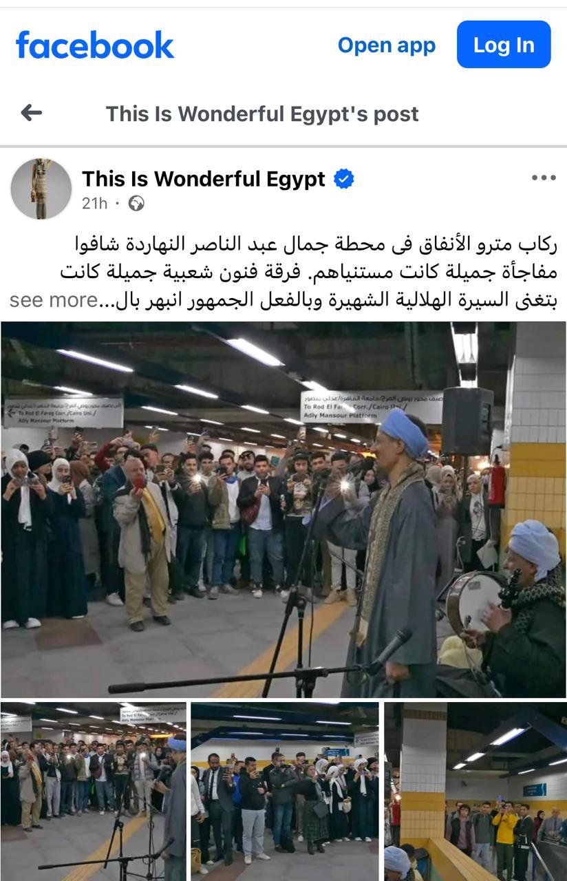 ومن بين المنصات التي تفاعلت مع الحدث صفحة “This is Wonderful Egypt”، التي وجّهت شكرًا خاصًا لوزارة الثقافة على هذه المبادرة، فيما تناول عدد من صناع المحتوى والمؤثرين الفعالية بوصفها نموذجًا ناجحًا لدمج الفنون في المجال العام وتعزيز حضور التراث الشعبي في الحياة اليومية للمواطنين.