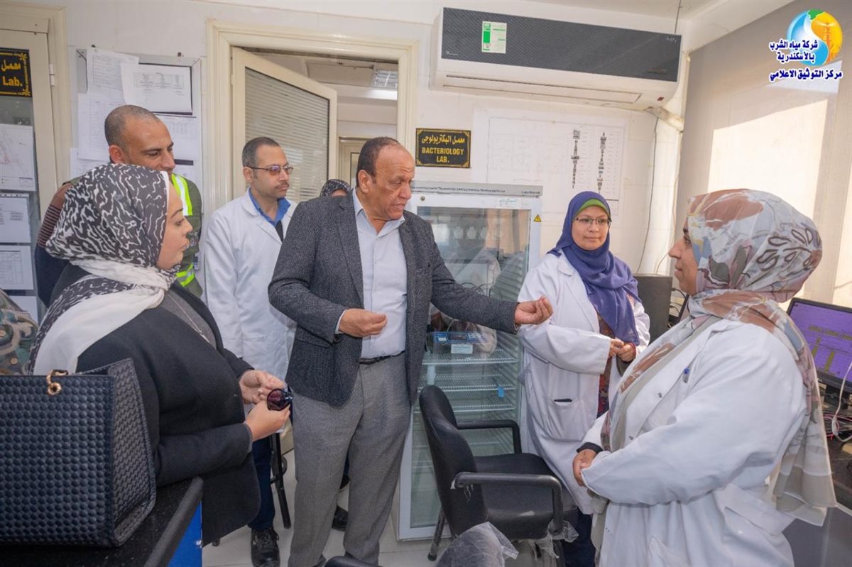 واستهل سيادته جولته بالمرور على محطة مياه المعمورة، حيث تفقد مراحل تنقية وإنتاج مياه الشرب، واطمأن على كفاءة التشغيل بدءًا من المروقات والمرشحات وصولًا إلى المعمل والمخازن، مستمعًا إلى آراء ومقترحات العاملين، ومشيدًا بجهودهم في الحفاظ على جودة المياه وضمان مطابقتها للمواصفات القياسية.