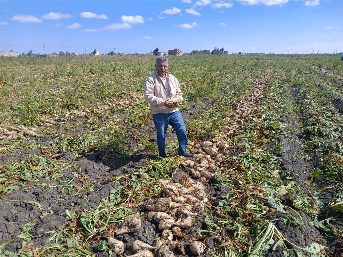 كما شملت الجولة متابعة أعمال حصاد محصول بنجر السكر بمنطقة أرض الفيروز، والاطمئنان على الحالة العامة للمحصول ومعدلات الإنتاج.