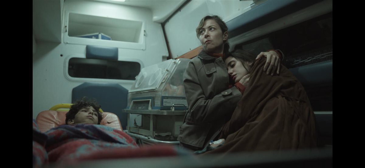 وتساعدها منة شلبي في الولادة، وبعد الولادة تطمئن فدوى على حالة ابنها الصحية، بسبب ما يحدث من تشوهات للأطفال حديثي الولادة في الحرب، وبالفعل تكون حالته جيدة.