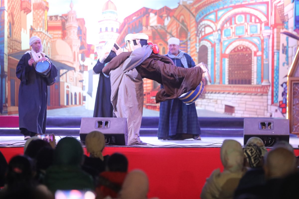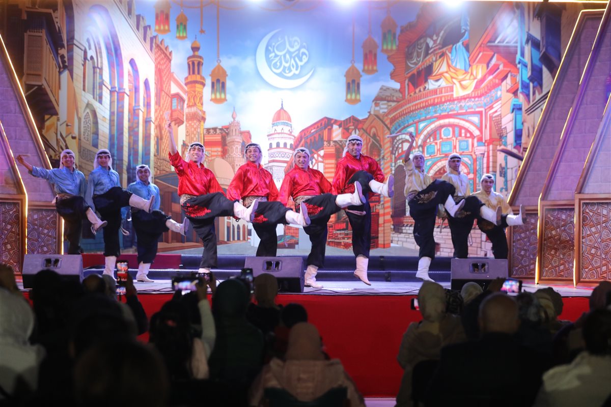وقدمت الفرقة تحت إشراف الفنان الدكتور محمد الفرماوي مدير عام الفرقة، باقة من استعراضاتها المميزة منها: "دبكة المجوز، الأغاني، فتوات قبلي، الحجالة، الحصان، أم الخلول، التنورة"، واختتمت الفرقة حفلتها باستعراض "العصا".