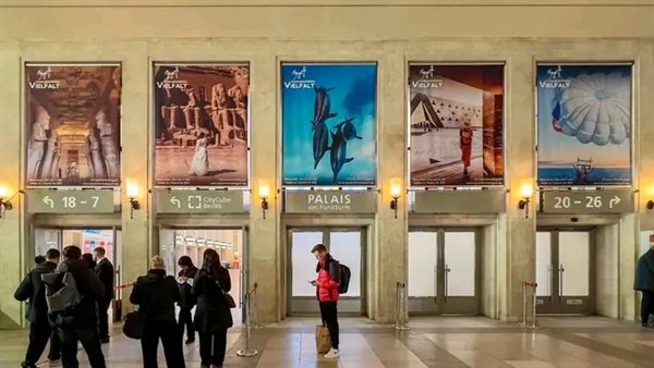 وأوضح محمد فرج مدير مكتب برلين، أن الإعلانات الترويجية الموجودة بأرض المعارض، تم وضعها بمواقع متميزة بما يتيح لزائري البورصة رؤيتها مما يساهم في خلق الشغف لديهم وجذبهم لزيارة الجناح المصري، والتعرف على ما يقدمه من منتجات سياحية؛ حيث تم وضع إعلانات خارجية عند المدخل الشمالي والمدخل الجنوبي للبورصة والمداخل الرئيسية لأرض المعارض، بالإضافة إلى إعلان على " كوبري ميسي برلين الخاص ببورصة برلين" في ملتقي طرق ومداخل البورصة.