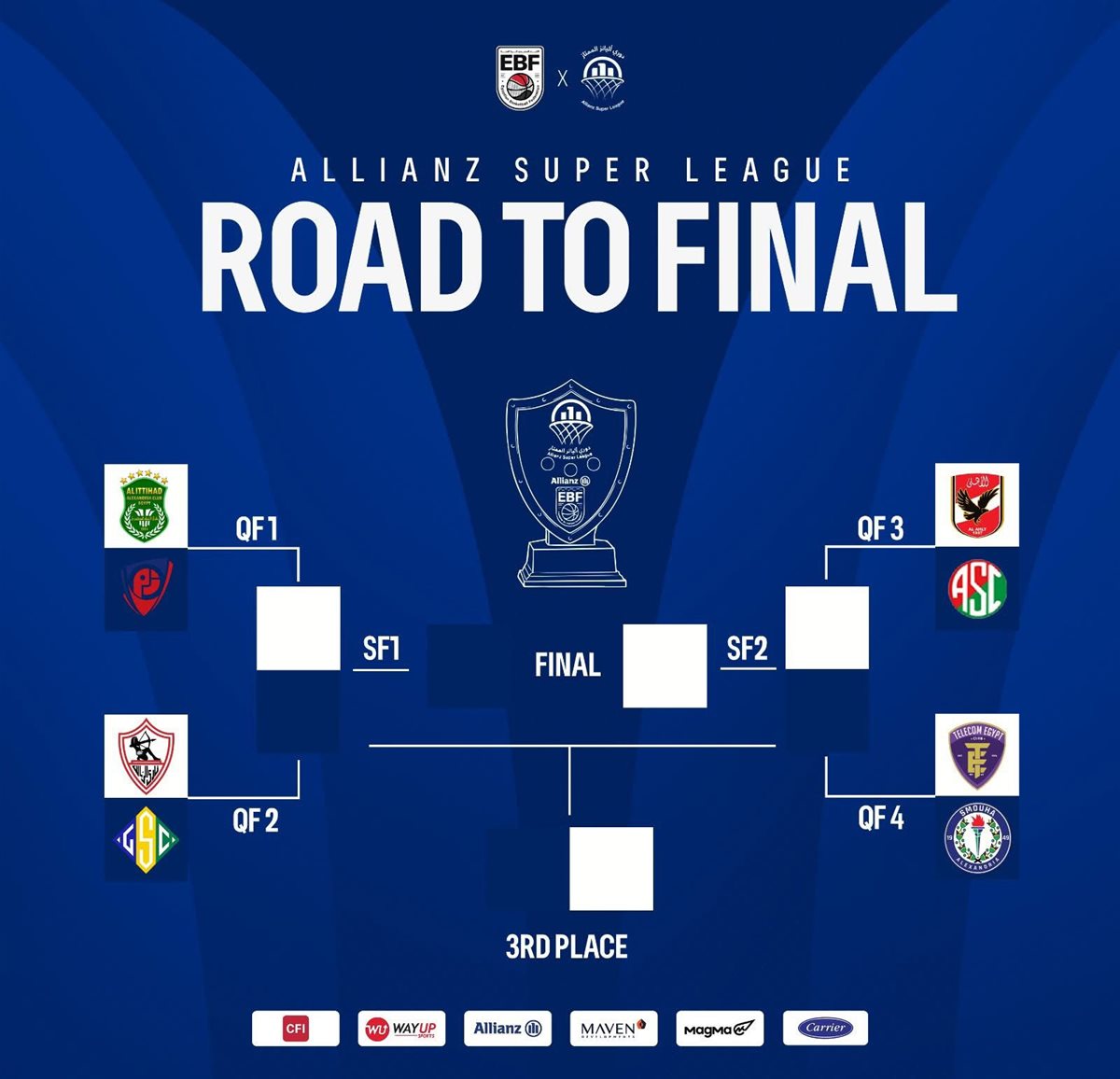 وكانت ستة فرق قد حجزت مقاعدها مباشرة في ربع النهائي عقب ختام الدور التمهيدي، وهي: الاتحاد السكندري، الأهلي، المصرية للاتصالات، الزمالك، الجزيرة، وسموحة، قبل أن يلحق بهم فريقا سبورتنج وبتروجت بعد نجاحهما في تخطي المرحلة التكميلية.