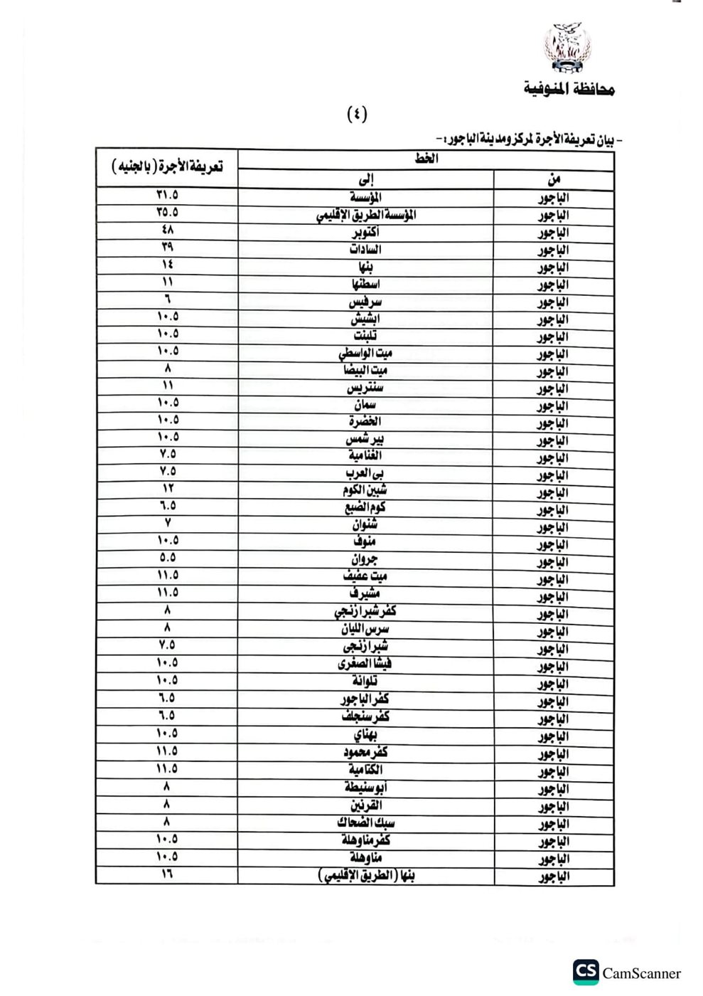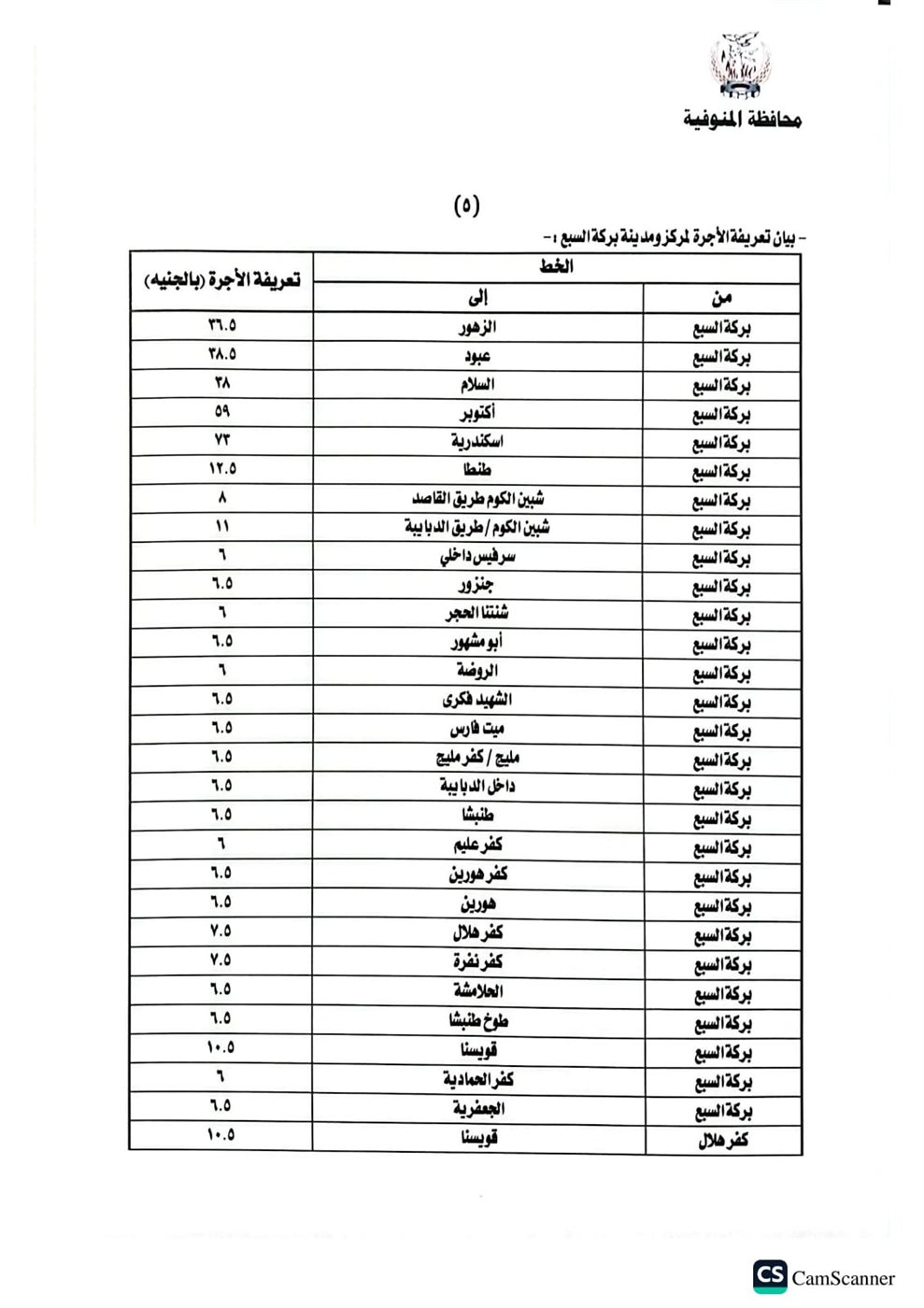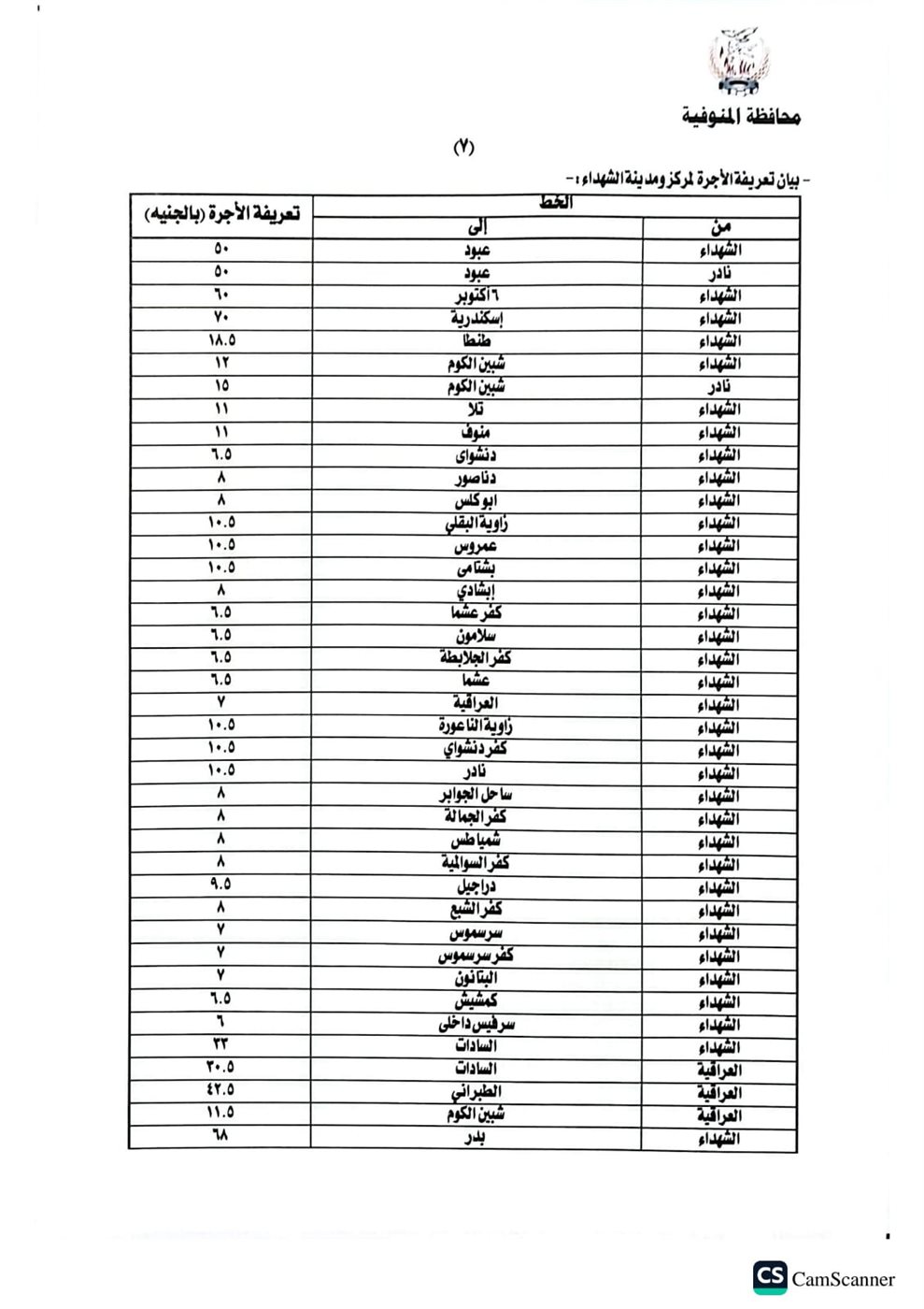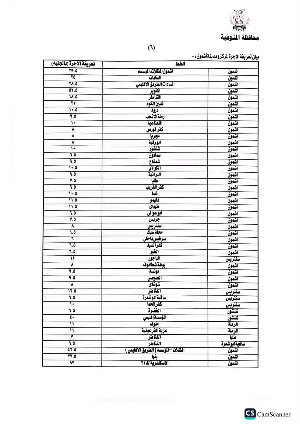 أصدر اليوم اللواء عمرو الغريب محافظ المنوفية قرارا بشأن تعديل التعريفة الجديدة والمقررة لركوب سيارات الأجرة والسرفيس والتاكسي والتوك توك بدائرة المحافظة، وذلك عقب قرار لجنة التسعير التلقائي للمنتجات البترولية وزيادة أسعار البنزين والسولار، اعتبارا من اليوم الثلاثاء الموافق ١٠ مارس٢٠٢٦، جاء ذلك خلال اجتماع بحضور محمد موسى نائب المحافظ والمحاسب خالد النمر السكرتير العام المساعد والعقيد مصطفى الضبع وكيل إدارة المرور والعقيد هيثم النطاط مدير مباحث المرور وأسامة عز الدين وكيل وزارة التموين والعقيد محمد فتحي مدير مشروع المواقف.