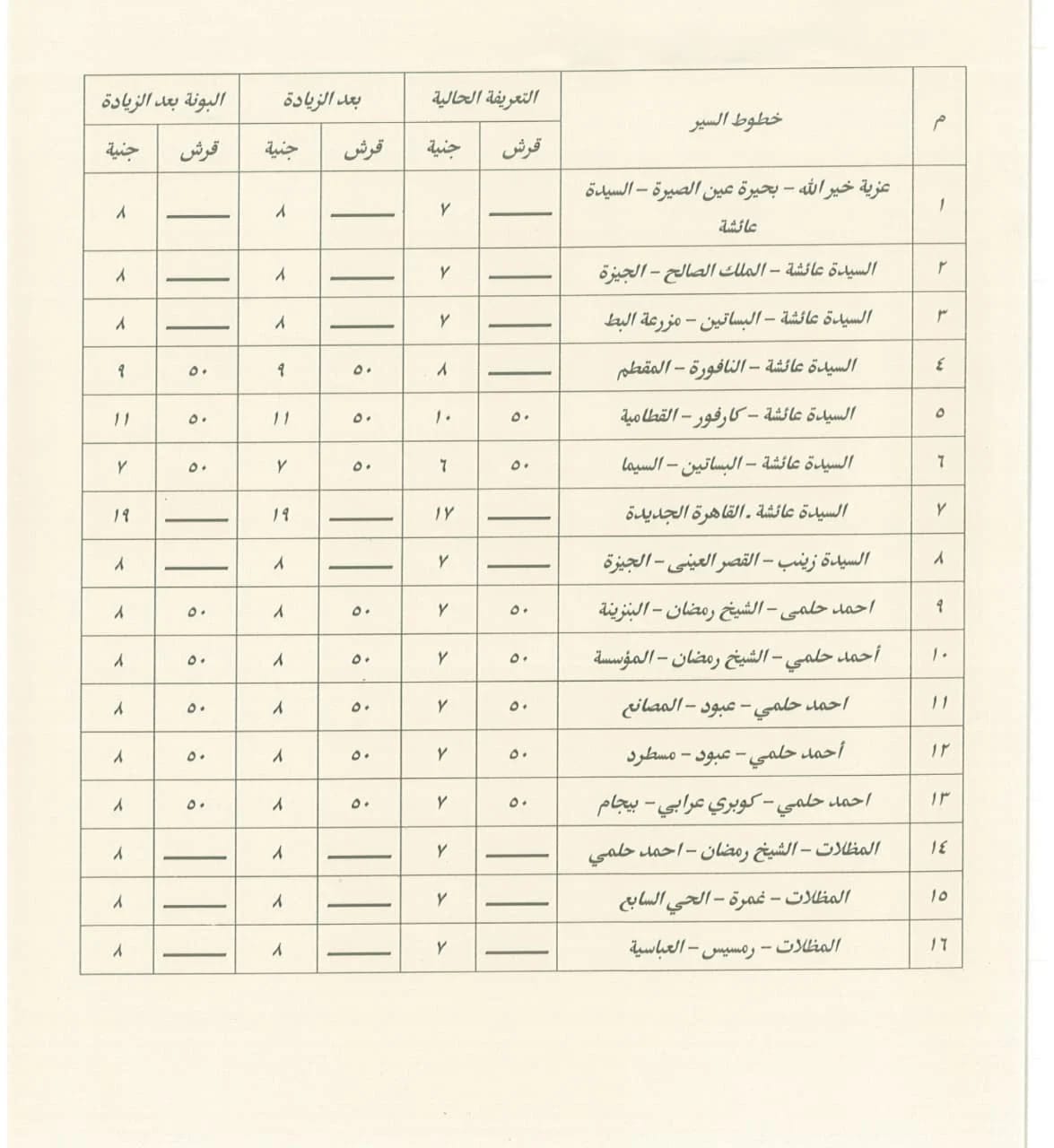 محافظ القاهرة يعدل تعريفة الركوب للسرفيس والنقل العام والتاكسي الأبيض