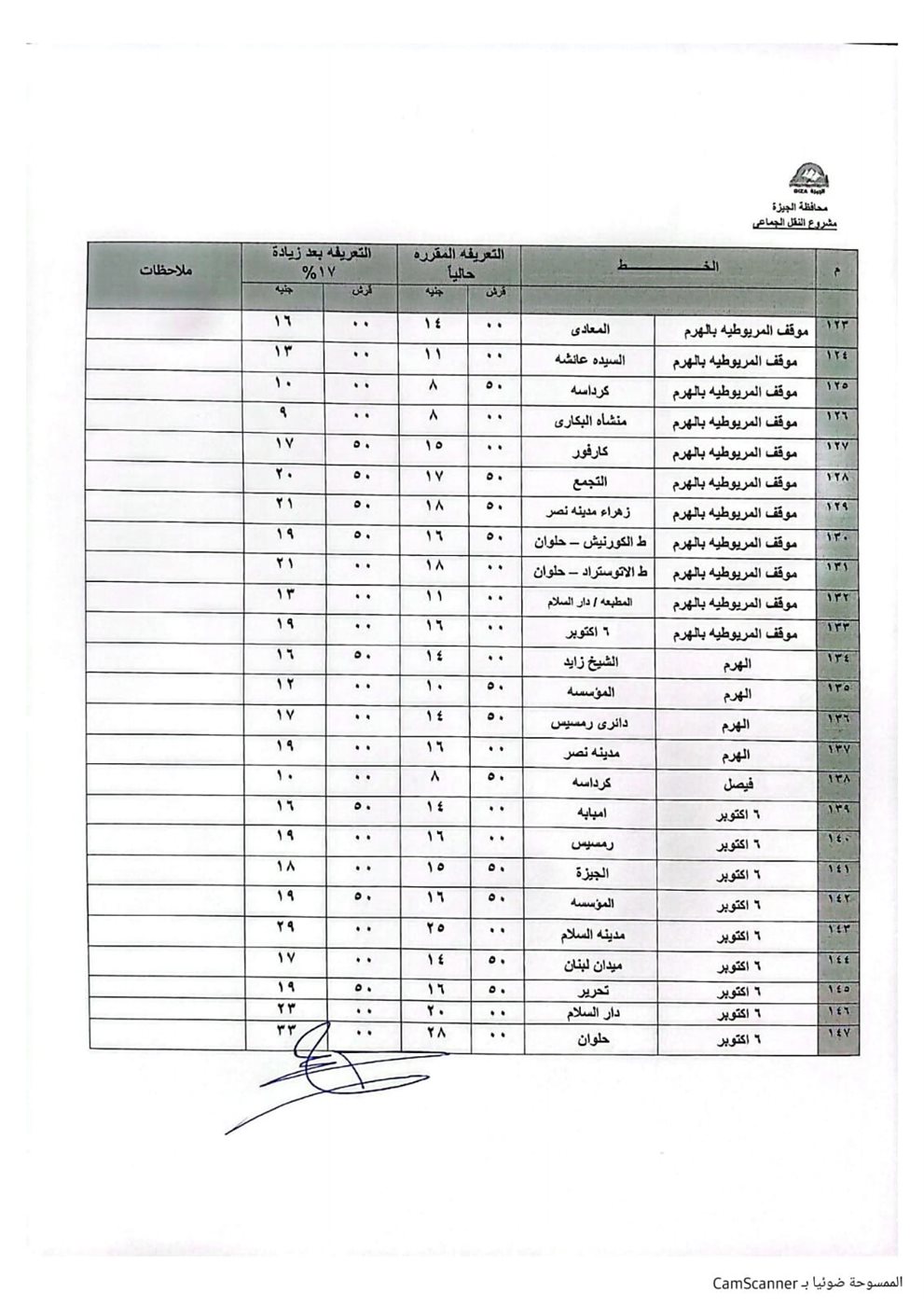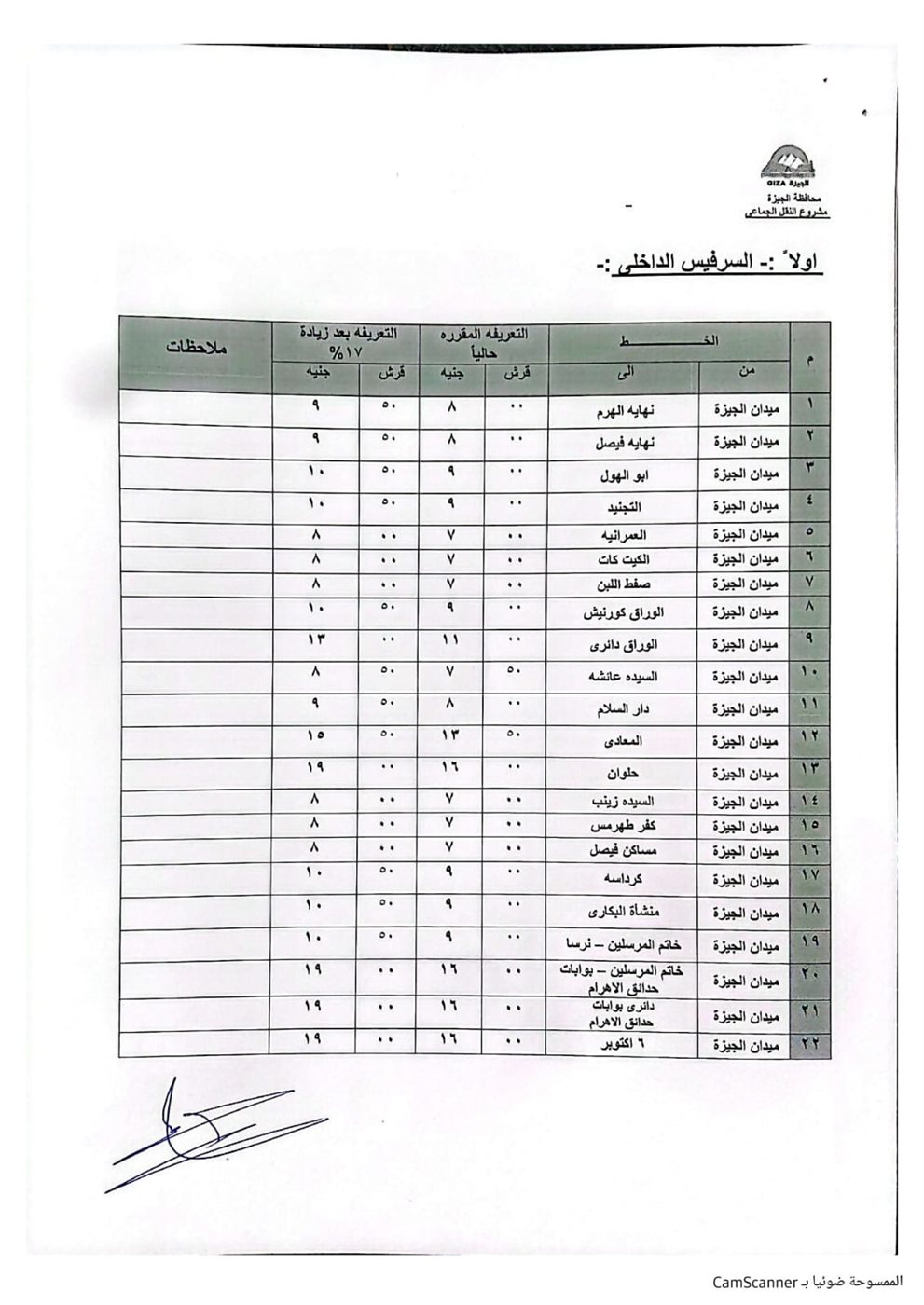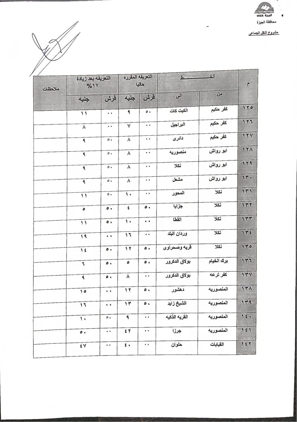 اعتمد الدكتور أحمد الأنصاري محافظ الجيزة التعريفة الجديدة لسيارات السرفيس والنقل الجماعي الداخلية والخارجية والتي يتم تطبيقها اعتبارًا من اليوم الثلاثاء وطبقًا للجداول المرفقة، وذلك في ضوء قرار لجنة التسعير التلقائي للمنتجات البترولية بوزارة البترول بتحريك أسعار المنتجات البترولية.