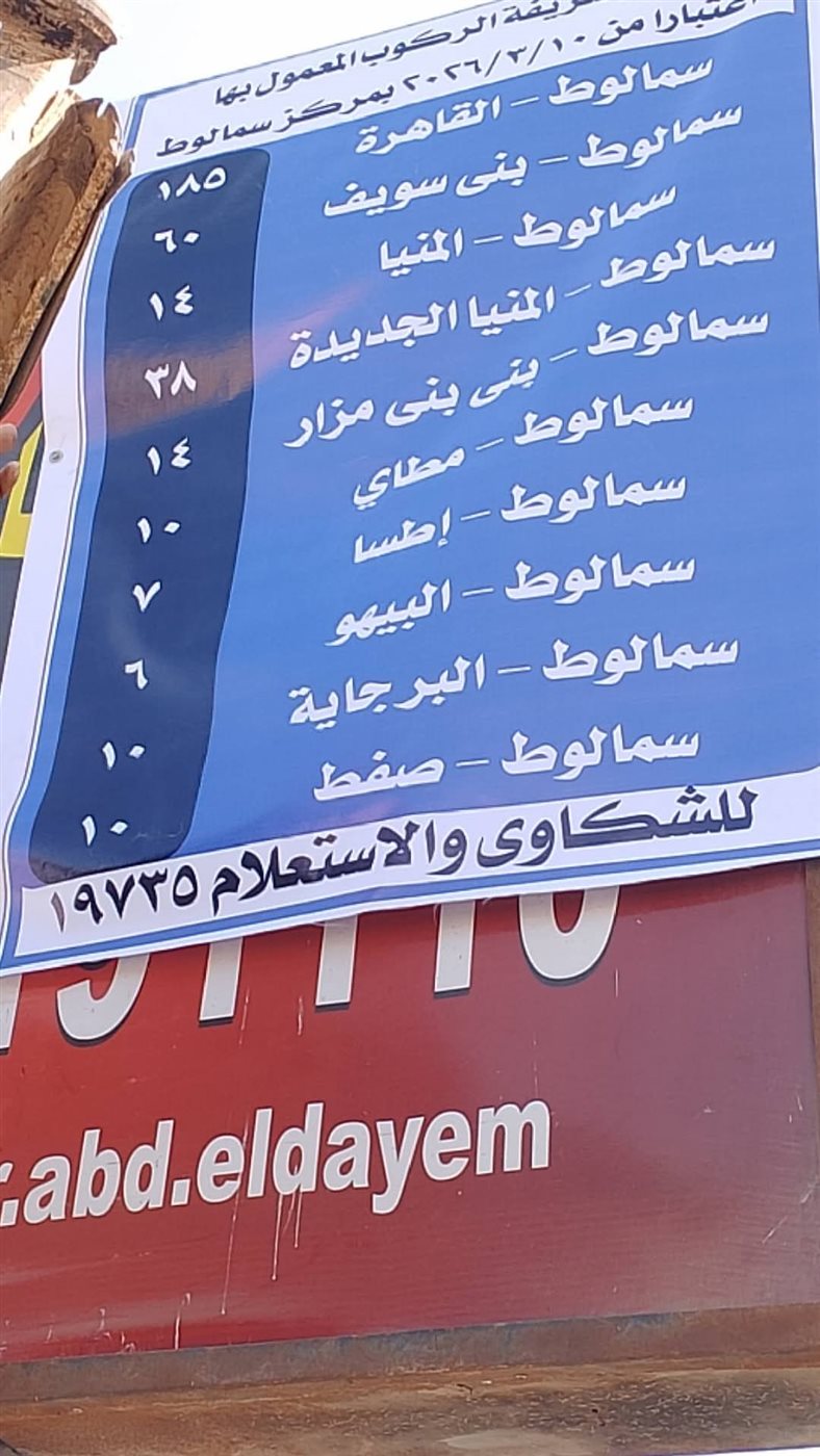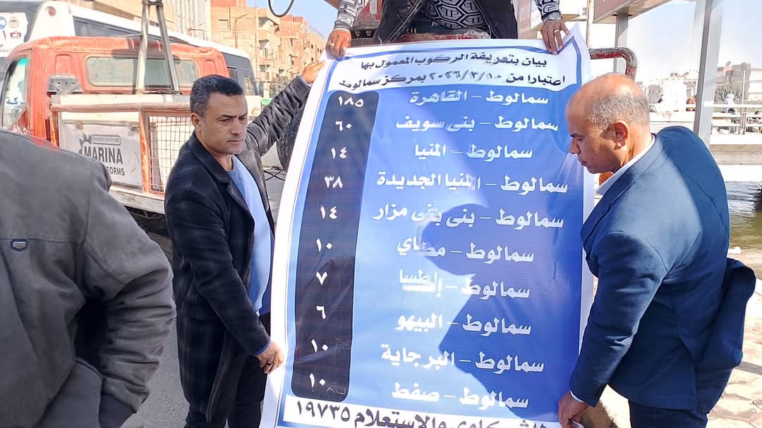 تفقد عويس قاسم الغرياني رئيس مركز ومدينة سمالوط سير العمل بمواقف السيارات بسمالوط، للاطمئنان على انتظام حركة نقل الركاب والالتزام بالتعريفة الجديدة للمواصلات ودون أي استغلال من السائقين، والتأكد من تركيب بانرات بجميع المواقف بالتعريفة الجديدة وأرقام الشكاوى ووضع استيكرات بالتعريفة الخاصة بكل خط على السيارات، مع التشديد على التزام السائقين بالأجرة المقررة وتطبيق العقوبات الرادعة على المخالفين، جاء ذلك بحضور نواب رئيس المركز ومدير إدارة المواقف بسمالوط ومسئولي إدارة مرور سمالوط ومباحث المرور بسمالوط.