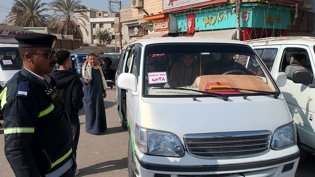 رئيس مركز سمالوط بالمنيا يتفقد المواقف ويضع ملصقات على سيارات الأجرة بالتعريفة الجديدة