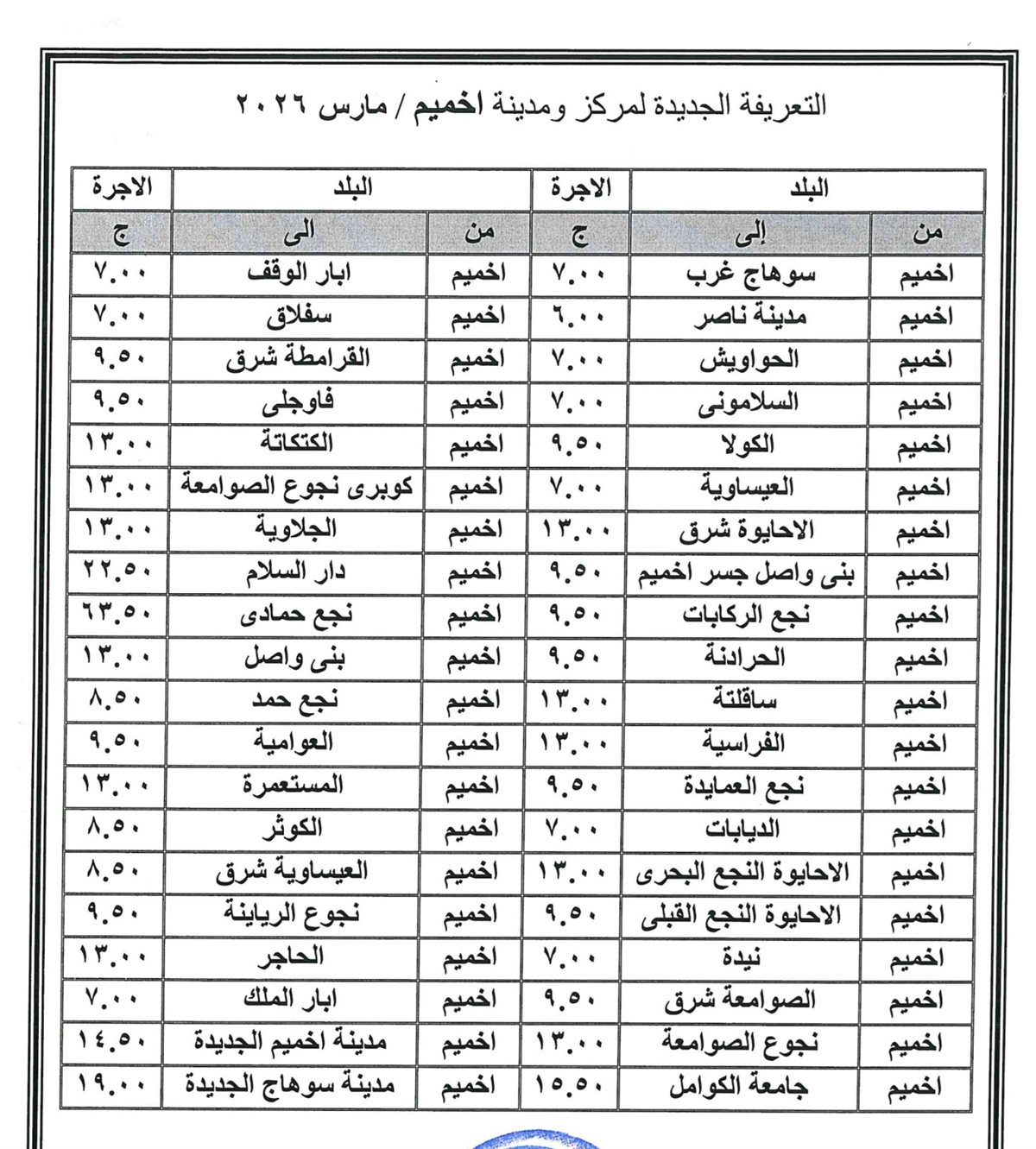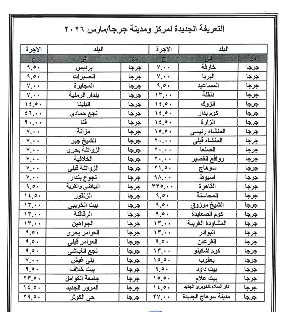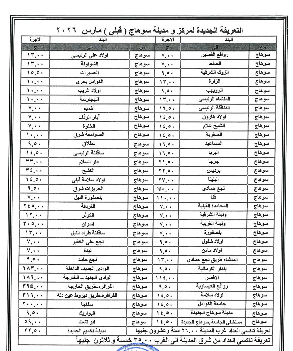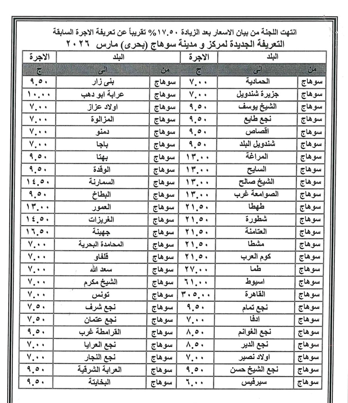 محافظ سوهاج يصدر قرارًا بتعديل تعريفة الركوب لسيارات الأجرة
