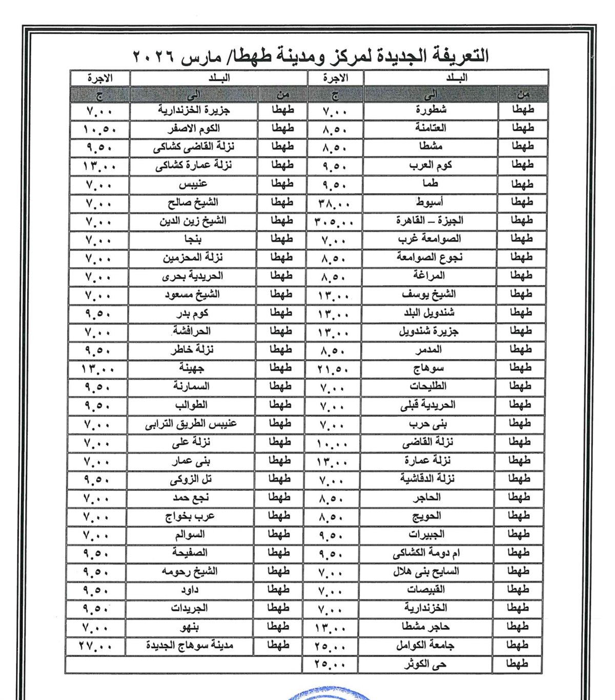 أصدر اللواء طارق راشد محافظ سوهاج، قرارا بشأن تعديل تعريفة الركوب لسيارات الأجرة العاملة بنطاق المحافظة، وذلك بعد قرار لجنة التسعير التلقائي لأسعار المنتجات البترولية بوزارة البترول وتحريك الأسعار لبعض المنتجات اعتبارًا من اليوم، في ظل الظروف الاستثنائية التي تمر بها اسواق الطاقة عالمياً.