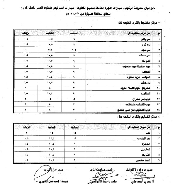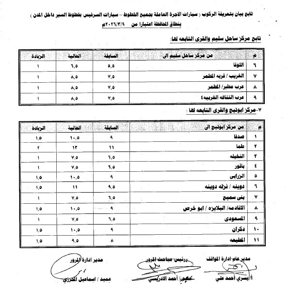 أصدر اللواء محمد علوان، محافظ أسيوط، قرارا رقم 474 لسنة 2026 بالتعريفة الجديدة لأجرة المواصلات الداخلية والخارجية بمختلف وسائل النقل الجماعي والسرفيس والتاكسي داخل مدن ومراكز المحافظة، وذلك عقب قرار لجنة التسعير التلقائي للمنتجات البترولية بتحريك أسعار البنزين والسولار ويأتي ذلك في ضوء الوضع الاستثنائي الناتج عن التطورات الجيوسياسية في منطقة الشرق الأوسط وتأثيراتها المباشرة على أسواق الطاقة العالمية، والتي أدت إلي ارتفاع كبير في تكلفة الاستيراد والإنتاج المحلي.
