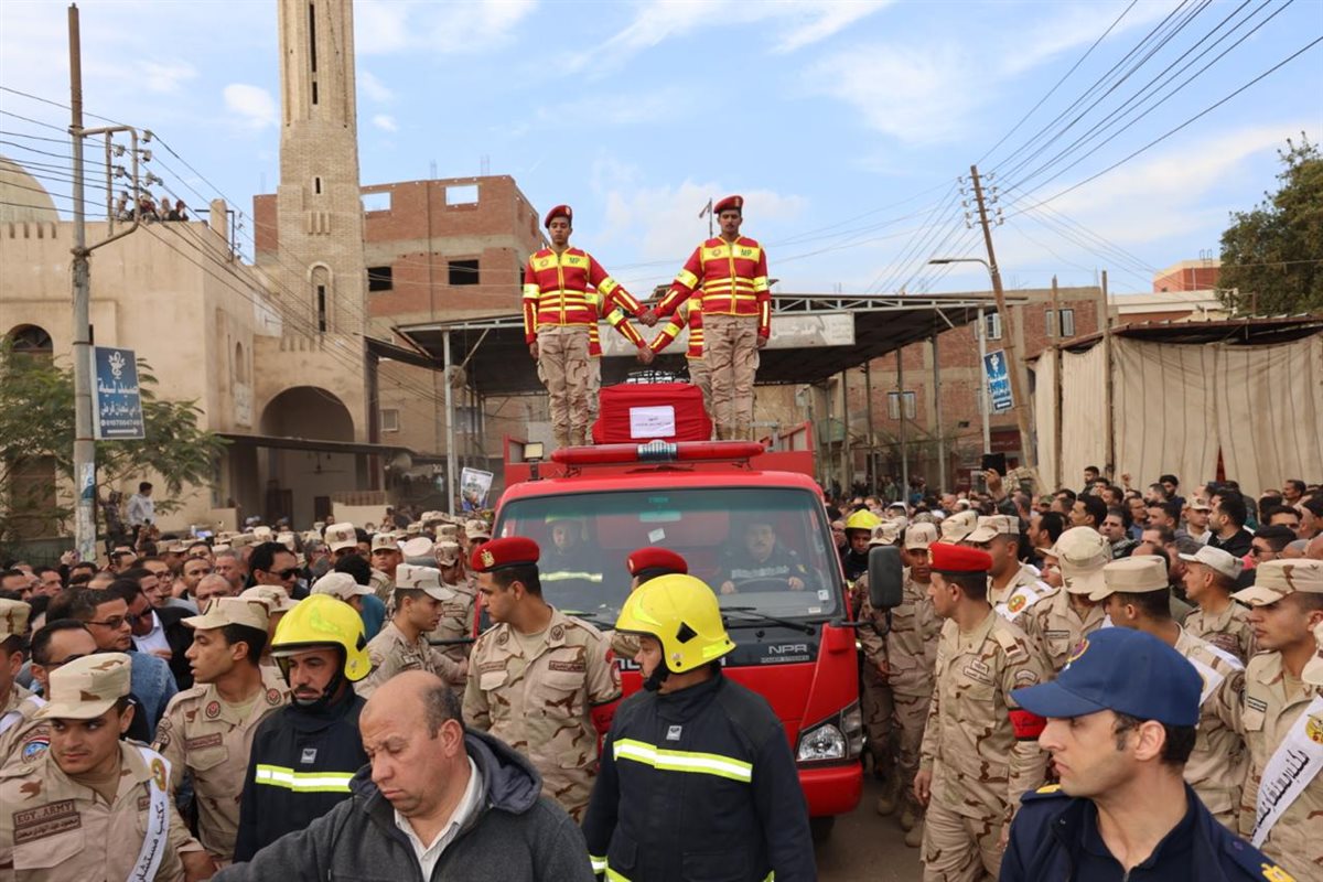 حيث إنطلقت الجنازة بمسقط رأس الشهيد بقرية شنشور التابعة لمركز أشمون وسط جمع غفير من الأهالي ، وقدم محافظ المنوفية واجب العزاء لأسرة الشهيد، داعياً المولى عز وجل أن يسكنه فسيح جناته وأن يلهم أهله الصبر والسلوان وأن يتغمده الله بواسع رحمته ، لافتاً إلى أن الشهيد قد ضرب نموذجاً ومثالاً يحتذى به فى التضحية والدفاع عن الوطن .