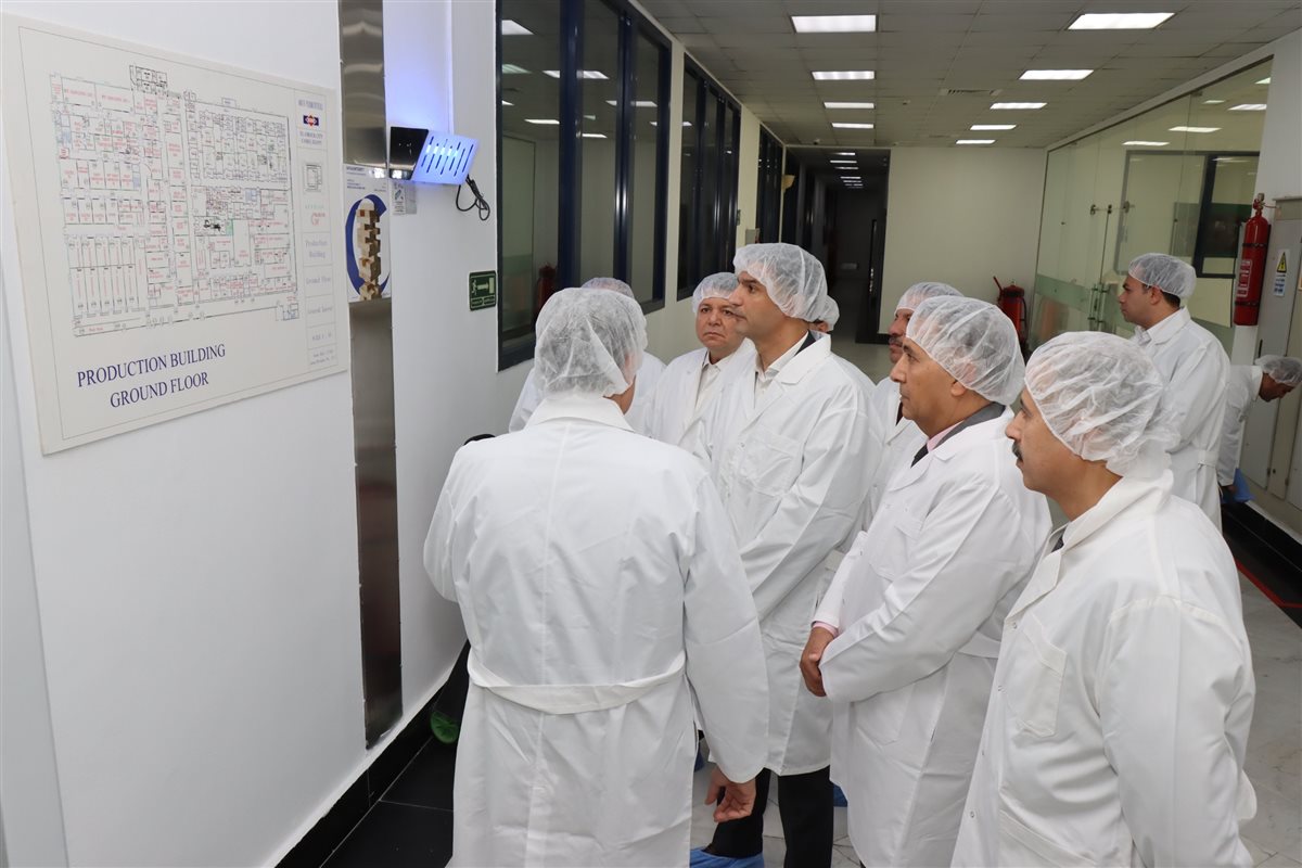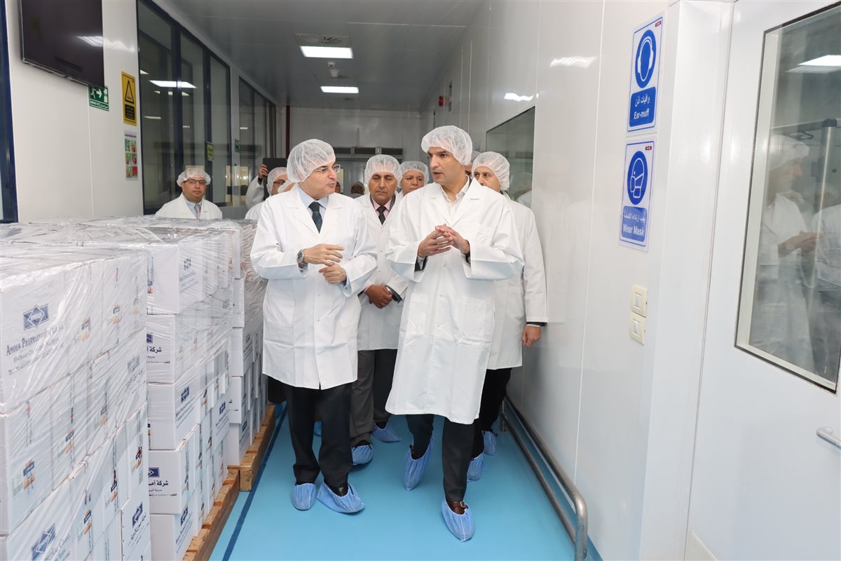 كما اطلع الوزير على مختلف مراحل العملية الإنتاجية بالمصنع والتي تتم وفق اشتراطات تعقيم صارمة ومتوافقة مع متطلبات منظمة الصحة العالمية، ومنظومة الجودة والرقابة التي تعتمد على عدة مراحل من الفحص والتأكد من سلامة المنتج في كل مرحلة إنتاجية قبل انتقاله إلى المرحلة التالية، كما تعرف الوزير على أهم الأسواق التصديرية للشركة والتحديات التي تواجه المصنعين في القطاع.