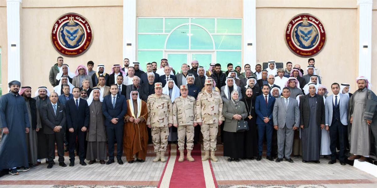 ونقل اللواء أح هشام فتحى شندى قائد قوات شرق القناة لمكافحة الإرهاب تحيات وتقدير الفريق أشرف سالم زاهر القائد العام للقوات المسلحة وزير الدفاع والإنتاج الحربى والفريق أحمد خليفة رئيس أركان حرب القوات المسلحة لشيوخ وعواقل سيناء، مشيراً إلى حرص القوات المسلحة على تقديم كافة أوجه الدعم لأبناء محافظتى شمال وجنوب سيناء والتعاون المستمر مع كافة مؤسسات الدولة لدعم جهود التنمية الشاملة بكافة ربوع سيناء.