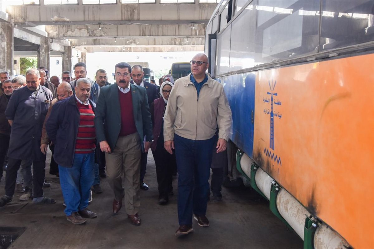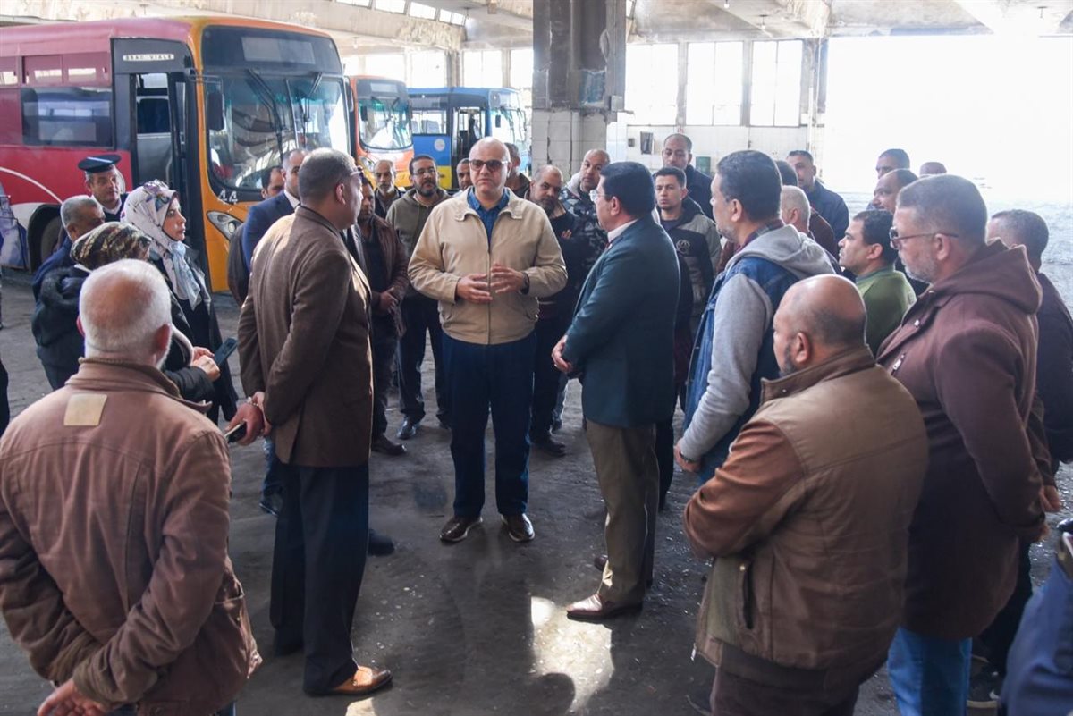 محافظ الإسكندرية يتفقد جراج هيئة النقل العام بمحرم بك