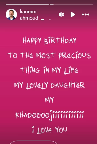 حرص الفنان كريم عبد محمود عبد العزيز علي تهنئة ابنته خديجة بمناسبة عيد ميلادها بكلمات مليئة بالحب والإخلاص.