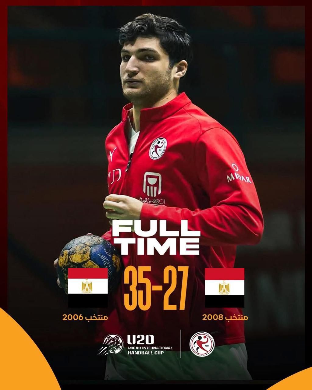 حقق منتخب مصر لكرة اليد تحت 20 سنة (مواليد 2006) فوزًا على نظيره منتخب مصر “ب” (مواليد 2008) بنتيجة 35-27، في ثاني أيام منافسات الدورة الدولية الودية المقامة على صالة اتحاد الشرطة الرياضي.