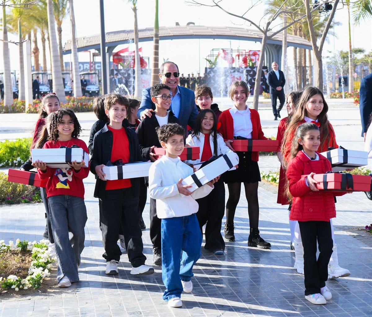 وحرص الرئيس السيسي في تقليد سنوي، على اصطحاب أطفال شهداء الوطن من القوات المسلحة والشرطة المدنية والمدنيين.