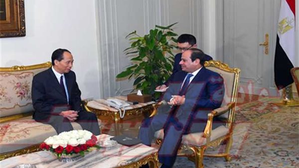 أضاف المُتحدث الرسمي أن الرئيس رحب بالمسئول الصيني، وطلب نقل تحياته إلى الرئيس الصيني وتقديره لمواقفه الداعمة لمصر، موجهاً التهنئة للرئيس الصيني بمناسبة تأكيد اللجنة المركزية للحزب الشيوعي على قيادته المحورية للبلاد. كما أشاد بالتعاون الوثيق الذي يربط بين البلدين على جميع الأصعدة، مؤكداً حرص مصر على مواصلة الارتقاء بعلاقات الشراكة الاستراتيجية التي تجمعها بالصين. ورحب بزيارة نائب رئيس اللجنة الدائمة للمجلس الوطني لنواب الشعب الصيني لمصر، مشيراً إلى ما يساهم به تبادل الزيارات والتواصل البرلماني في تعزيز أواصر الصداقة والتفاهم على المستويين الرسمي والشعبي. ونوه الرئيس إلى مساهمة مشروع التنمية بمنطقة قناة السويس في تنفيذ مبادرة الرئيس الصيني لإحياء طريق الحرير بالنظر إلى ما يتضمنه من موانئ ومناطق صناعية وخدمية ولوجستية تساعد على تعزيز حركة التجارة العالمية في هذه المنطقة. وأكد سيادته على اهتمام مصر بالاستفادة من تجربة الصين التنموية، والعمل على تعزيز التعاون معها في كافة المجالات، مرحباً بعمل الشركات الصينية في عدد من القطاعات المصرية الهامة، والاستفادة من المنطقة الصناعية الصينية بمنطقة قناة السويس لتمثل نقطة انطلاق لتصدير المنتجات الصينية إلى الأسواق المجاورة لمصر. كما رحب بانتهاء التفاوض حول اتفاقية تبادل العملات لتمويل التجارة بين البلدين بالعملة المحلية، مشيراً إلى ما سيساهم به ذلك في تعزيز التبادل التجاري.