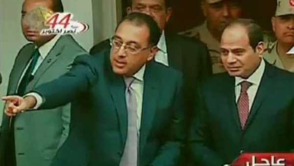 استمع الرئيس السيسي الى شرح المهندس مصطفى مدبولي وزير الإسكان والمرافق والمجتمعات العمرانية حول سير العمل بالحي السكني.