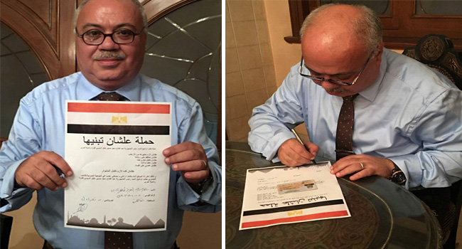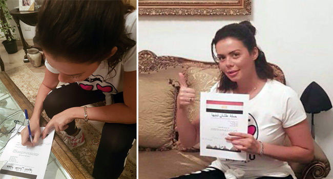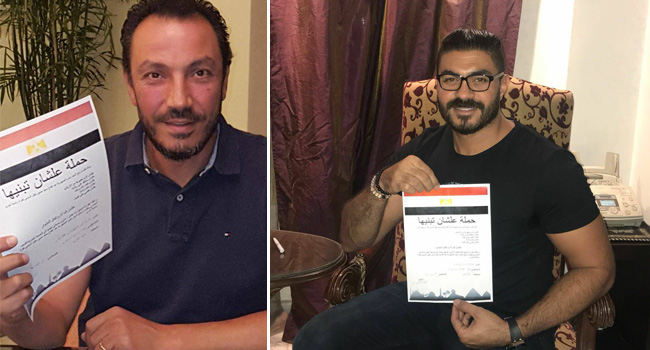 فمن الرياضيين الموقعين، مجدي عبدالغني ونسرين أمين وهاني رمزي بالاتحاد السكندري، والحكم الدولي أحمد الشناوي، ومن الفنانين حسين فهمي وهاني سلامة وطارق لطفي وهيثم شاكر وخالد سليم، وشعبان عبدالرحيم وتامر عبدالمنعم، وغادة عبدالرازق، وأميرة فتحي، والفنان عمرو رمزي وأشرف ذكي نقيب الممثلين، والفنان حسن يوسف، والفنان أيمن عزب، والمنتج ريمون مقار، والفنان إيهاب فهمي، وسميرة محسن وإيهاب فهمي وسوسن بدر، ومحمد إسماعيل وشريف الورداني، وايمي سالم.