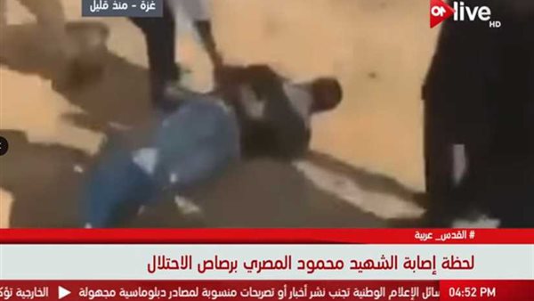 أذاعت قناة ON Live لقطات خاصة، منذ قليل، للحظة إصابة الشهيد محمود المصري، أثناء استهدافه من قبل رصاصات قوات الاحتلال الإسرائيلي، بعد أن اندلعت مواجهات مع قوات الاحتلال، شرق محافظة خان يونس.