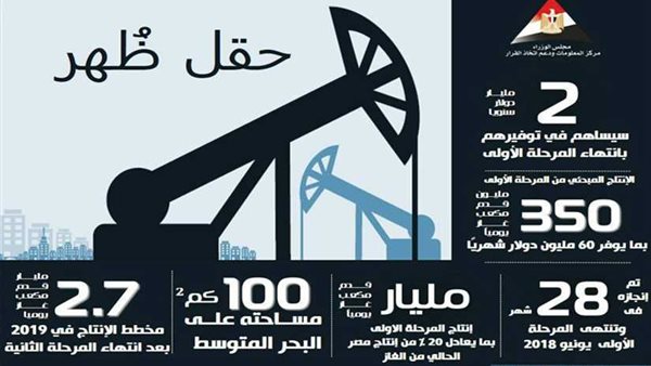 نشرت الصفحة الرسمية لمركز المعلومات ،ودعم اتخاذ القرار بمجلس الوزراء ،"انفو جراف " ، عن مشروع حقل ظهر لاستخراج وانتاج الغاز الطبيعي