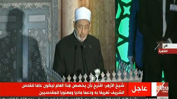 وأضاف الطيب، خلال كلمته في مؤتمر الأزهر العالمي لنصرة القدس، إن السيسي يرعى مع مصر وشعبها، القضية الفلسطينية، وخاصة بعد الأحداث الأخيرة التي حدثت من تعقيدات السياسة الجائرة والقرارات الغير مسئولة.
