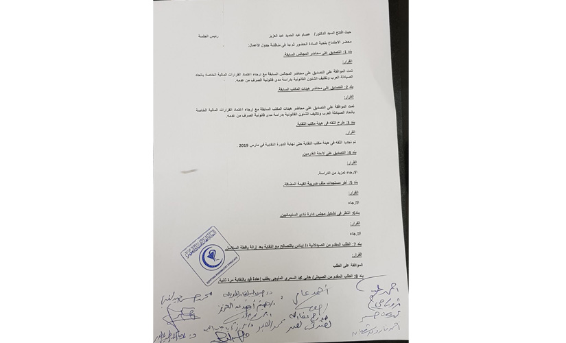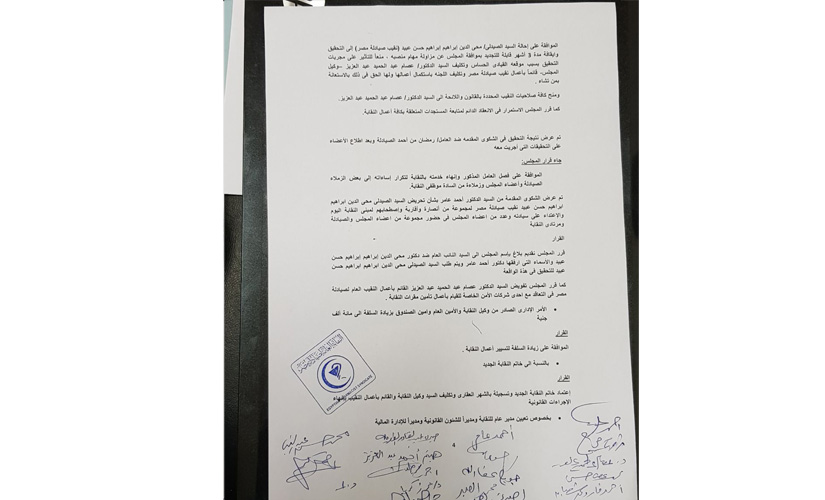 وقرر المجلس وقف النقيب العام محيي عبيد لمدة 3 شهور وإحالته للتحقيق في عدد من المخالفات الإدارية والتجاوزات وغيرها.
