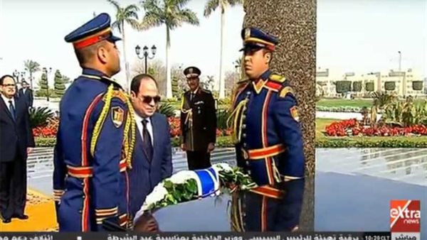 وضع الرئيس عبد الفتاح السيسي، أكاليل الزهور على النصب التذكاري لشهداء الشرطة، وذلك بمناسبة الاحتفال بالعيد السادس والستون للشرطة، وذلك في مقر أكاديمية الشرطة.