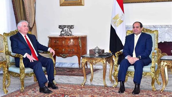 وصرح السفير بسام راضي، المُتحدث الرسمي باسم رئاسة الجمهورية، بأن وزير الخارجية الأمريكي، في زيارته الأولى الرسمية للقاهرة، نقل إلى الرئيس السيسي تحيات الرئيس الأمريكي "دونالد ترامب"، مؤكداً على ما تمثله مصر من شريك هام للولايات المتحدة وما يجمعهما من علاقات ممتدة تحرص الولايات المتحدة على تعزيزها وتطويرها، ومؤكداً على وقوف بلاده إلى جانب مصر والتزامها بدعمها في حربها ضد الإرهاب.