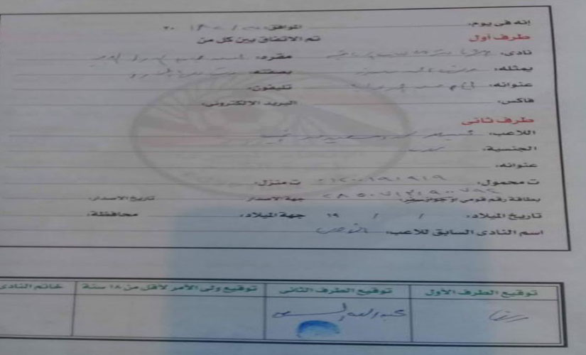 ووقع اللاعب للزمالك على النسخ الأربعة بجانب استمارة رغبة.