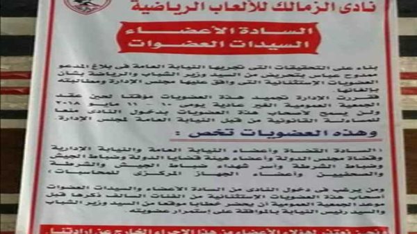 صورة.. مجلس الزمالك يمنع العضويات المستثناه من دخول النادي