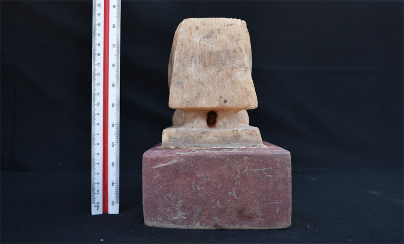 و أكد د. الدماطي أنه من القطع الهامة التي تم الكشف عنها تميمة قلب برأس آدمي لشخص يدعى ثاي من عصر الرعامسة، وكذلك الجزء السفلي من تمثال من عصر الرعامسة، مصنوع من الألباستر يرتفع 20 سم على قاعدة من الحجر البروفيري الأحمر لكاهن جالس القرفصاء على يظهر في رداء منمق جميل، ويجلس على سادة شكلت من نفس الحجر.