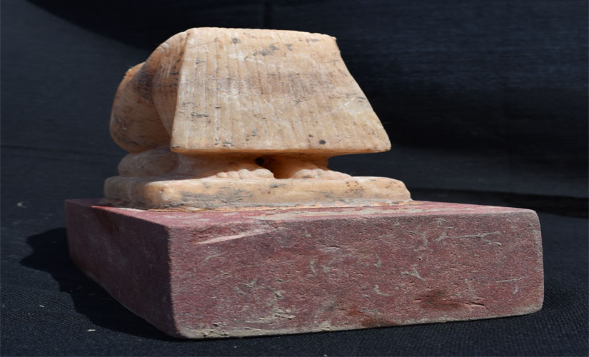 كما كشف على العديد من القطع الصغيرة الأخرى كجعران وبعض التمائم الصغيرة ورأس لثعبان كبرا من الحجر الجيري الملون كانت تزين أحد مداخل القصر.